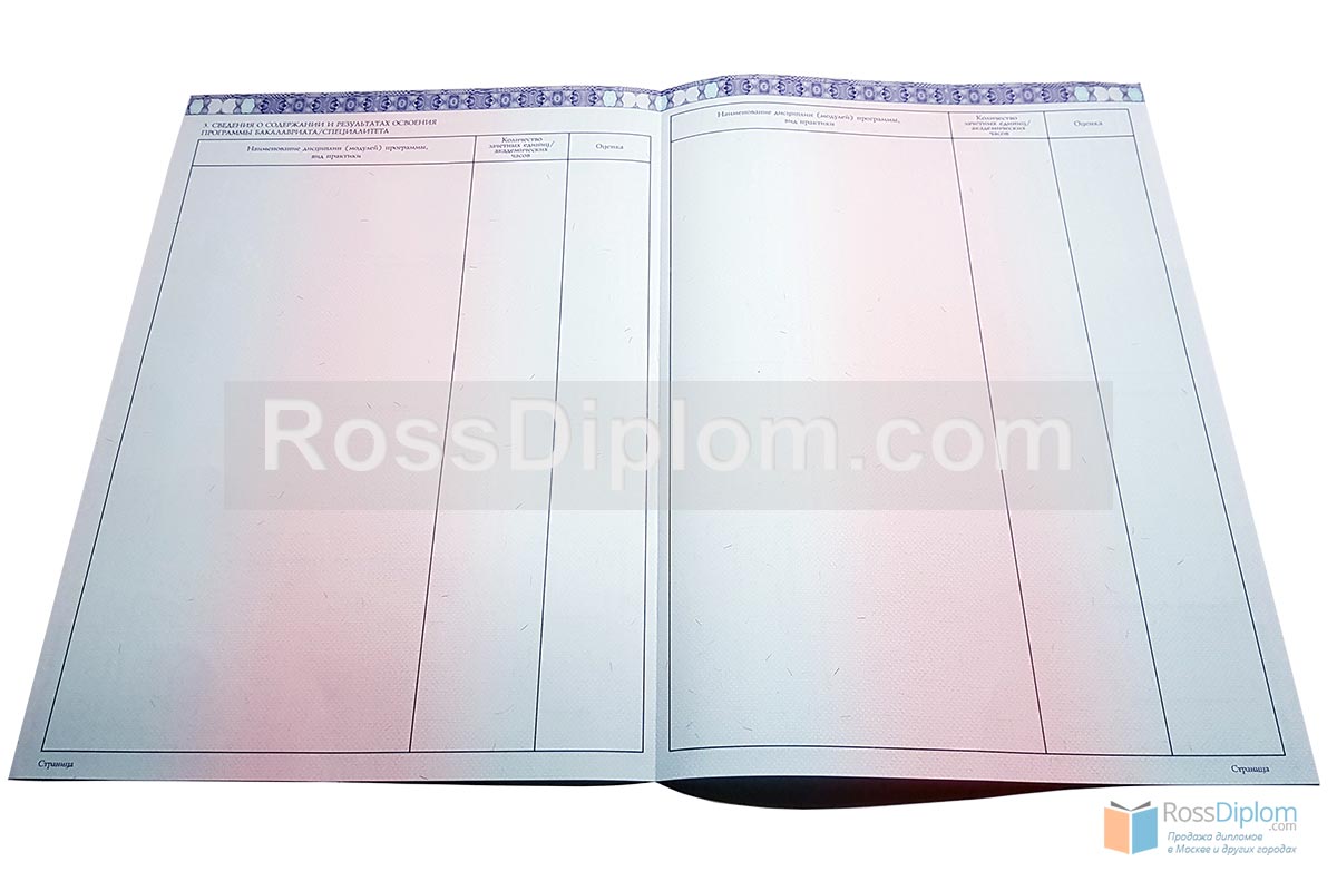 В приложении к диплому нового образа вы найдете сведения о выпускнике, его квалификации, сроке обучения, программе и полученным по дисциплинам оценкам, о пройденных практиках, курсовых и дипломной работе.