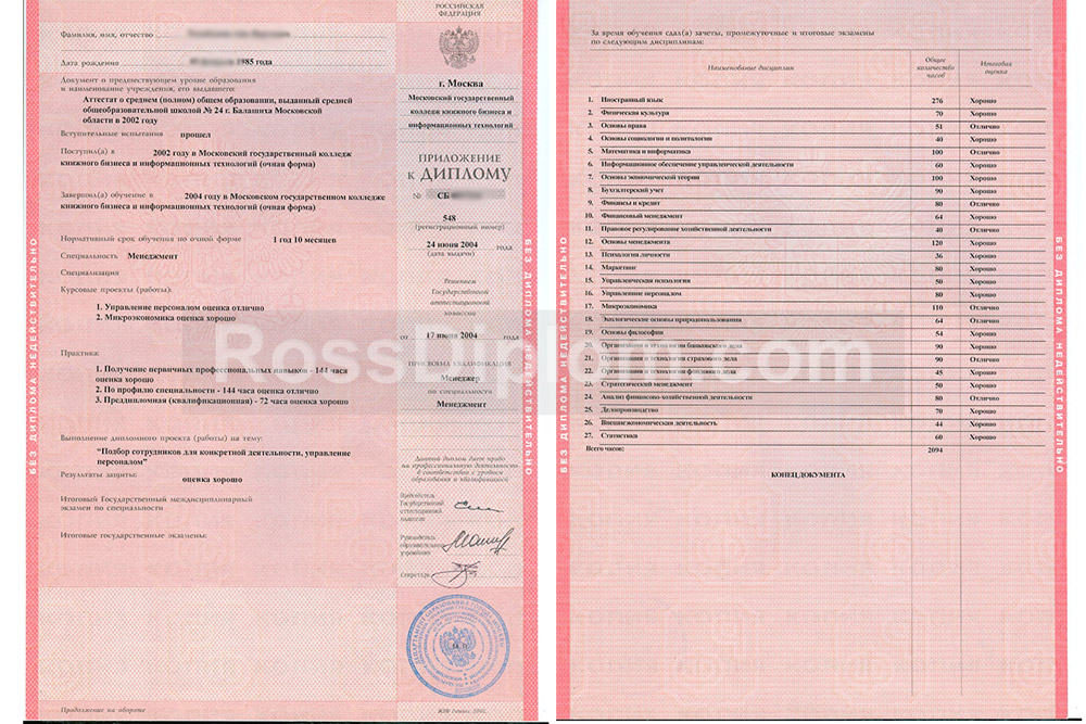 • Комплект: Диплом + твёрдая обложка + приложение;